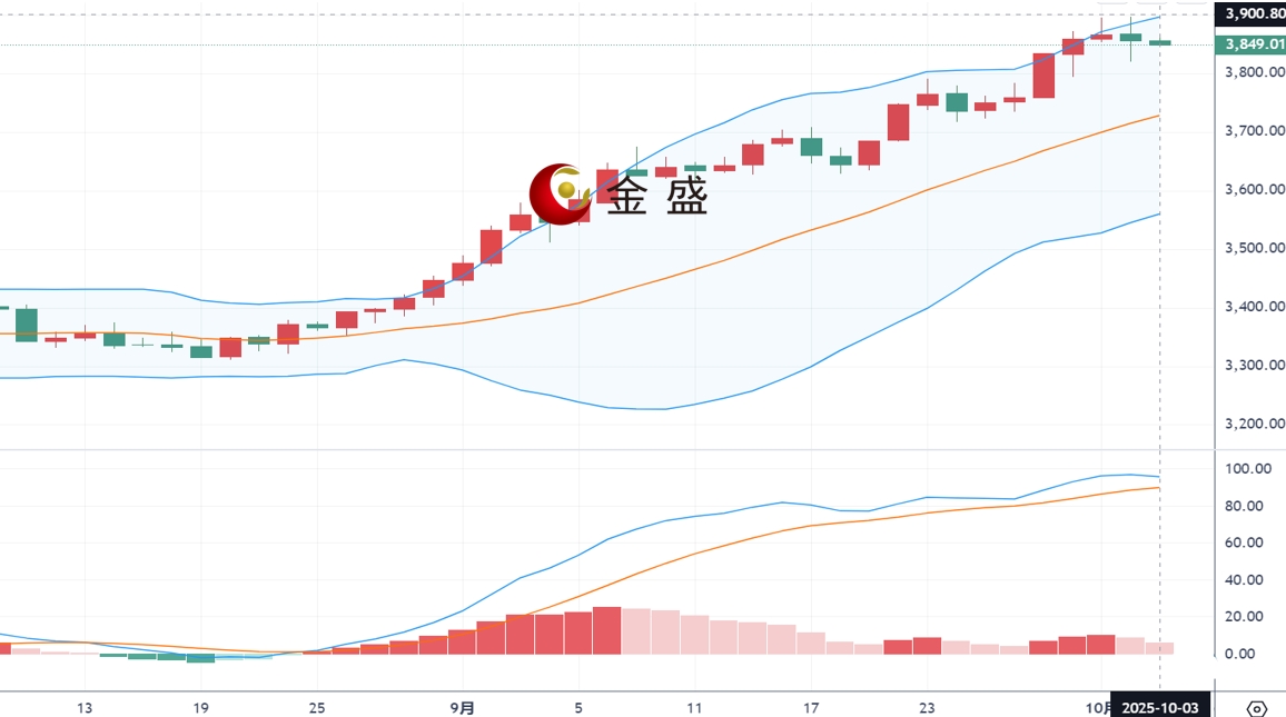 现货黄金周四(10月2日)亚市早间开盘于3867.89美元/盎司,最高3897.03美元/盎司,最低3819.06美元/盎司,收盘3856.30美元/盎司,全天波幅约78美金,当日跌幅约0.24%。