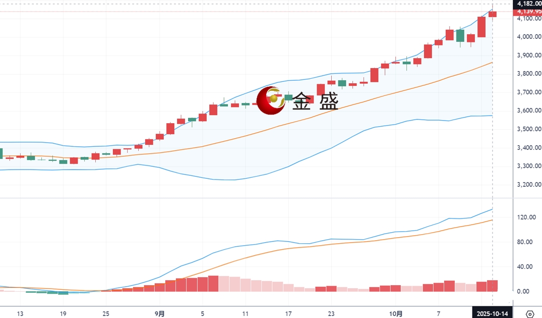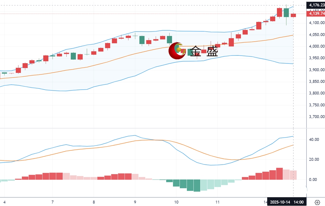 现货黄金周二(10月14日)开市于4110.38美元/盎司,盘中自日内创下的历史新高至4179美元/盎司附近后大幅回落,美国总统特朗普在关税问题上的立场转变持续提振市场风险偏好,加之美元日内逢低买盘的出现,促使黄金在严重超买条件下出现获利了结,但在宏观环境不确定性持续、美联储降息预期强化的背景下,黄金仍具备中期上涨空间。