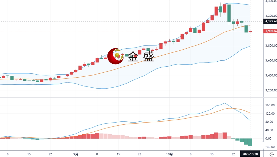 现货黄金周一(10月27日)亚市早间开盘于4072.69美元/盎司,最高4109.12美元/盎司,最低3971.51美元/盎司,收盘3981.37美元/盎司,全天波幅约28美金,当日跌幅约3.19%。