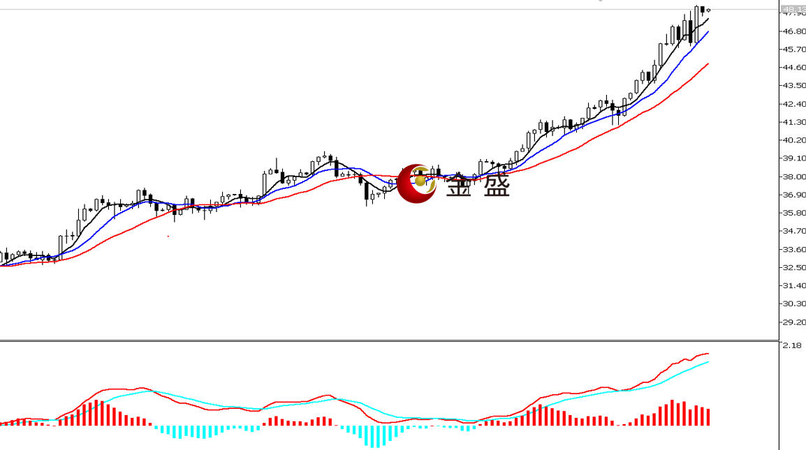 前一个交易日,早盘时段,行情承压47美元一带短暂调整,价格创当日低点46.63美元。午后持续上行。晚盘时段,行情延续涨势,价格突破48美元大关有加速现象,盘中一小时拉升逾1%,创当日高点48.35美元,最终收中阳线。均线系统多头排列,对价格上涨构成支撑。MACD指标快慢线零轴上方现金叉,做多的动能为主。白银上涨趋势不变,日图形成两阳夹一阴的看涨信号,周线完成七连阳,且最近一周的阳线实体饱满,即价格稳步上行。操作上低吸为主。