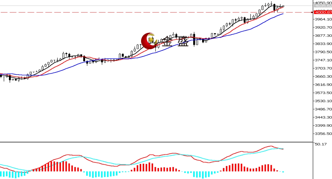 现货黄金周四(10月9日)开市于4040.78美元/盎司。亚欧盘时段,美指承压99美元关口有所调整,午后收复日内全部跌幅。黄金早盘短暂跳水至4000美元大关,随后震荡上行走V字型。截止目前,金价最高4043.52美元/盎司,最低4001.33美元/盎司。黄金上行趋势不变,周内形成三日连阳,且均是饱满的K线,表明市场空头乏力。4000美元大关形成第一支撑区,此处也是多周期的均线支撑。价格不能有效跌破,则行情偏向还有高点。