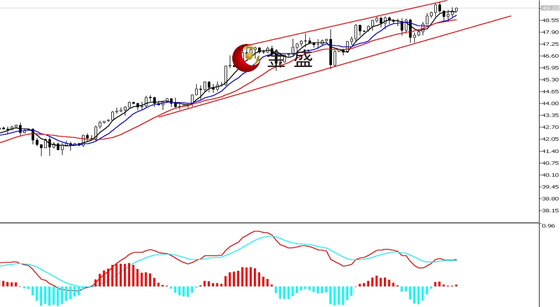 前一个交易日,白银跟随黄金上涨,多头连续打破48、49美元关口,再创14年新高,最终收涨2.17%。今天白盘行情围绕49美元一带震荡,但价格重心有所上移。四小时周期,均线系统不断收敛,运行在价格下方形成支撑。MACD指标快慢线零轴上方运行,做多的动能为主。白银上涨趋势不变,行情走势形成图示的楔形结构。昨日承压结构上轨有调整,但回落空间有限,可见多头筹码惜售。后市偏向测试50美元一带的压力,操作上调整做多为主。