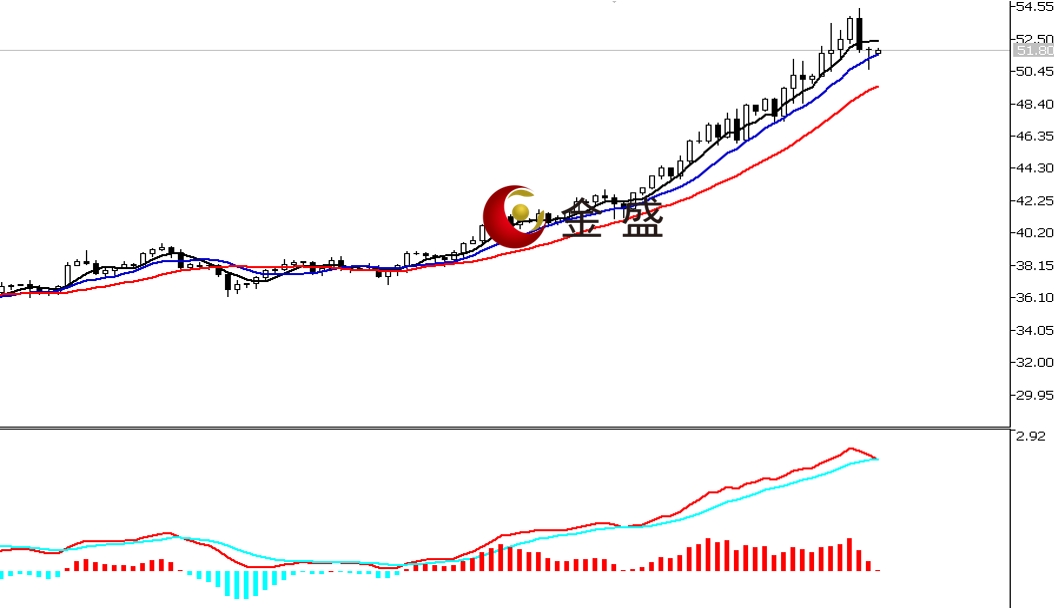 前一个交易日,早盘时段,银价依托54美元关口震荡,走势形成V字型结构。午后创当日高点54.43美元。晚盘时段,白银跌破早盘低点,行情出现加速下行,盘中一小时下挫逾2%,价格跌破多个整数关口,最低至50.56美元,最终收中阴线。均线系统多头排列,价格回踩十周期均线。MACD指标快慢线零轴上方有死叉的迹象,做多的动能衰竭。白银上涨趋势不变,但高位空头势能加大。周线形成流星线,日图构成阴包阳看跌信号,短期盘面或技术性调整。操作上高抛低吸。