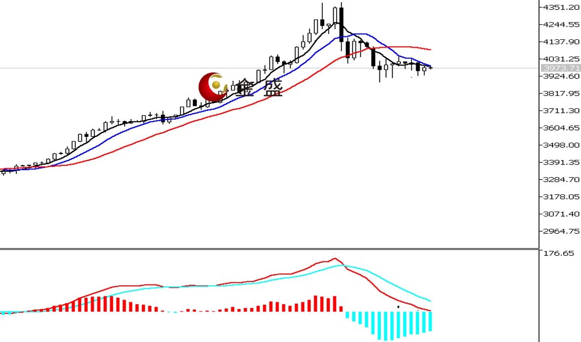 前一个交易日,白盘时段,黄金依托3930美元关口震荡上行,亚盘拉升逾五十美金,午后有所调整。晚盘时段,多项经济数据好于预期,黄金不跌反升延续反弹,但力度减缓,价格创当日高点3990.15美元,日图收阳线。均线系统收敛向下拐头,运行在价格上方形成压力。MACD指标快慢线零轴上方现死叉,做空的动能为主。昨日黄金反弹为主,多头收复周二大部分跌幅,价格重新站上3960美元关口,短期关注这一带的支撑是否有效,一旦确认止跌企稳,则偏向上打开空间,反之则可能回踩昨日低点。