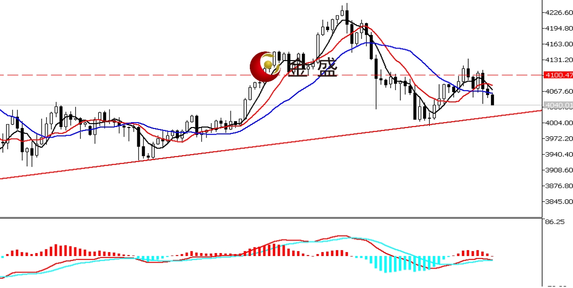 现货黄金周四(11月20日)开市于4077.59美元/盎司。亚欧盘时段,美指坚守100美元关口震荡上行,午后创周内新高。黄金开市短暂反抽至4100美元一带承压下行,早盘一小时下挫近四十美金,午后继续走低。截止目前,金价最高4109.88美元/盎司,最低4041.93美元/盎司。昨日黄金冲高回落收长上影线,未能有效突破多空分水岭4100美元一带。今天早盘二次反抽确认此关口的压力有效。行情区间震荡偏空,后市或再次确认三角形下轨的有效性。晚间市场公布非农数据,盘口波动或加剧,注意做好风险管理。